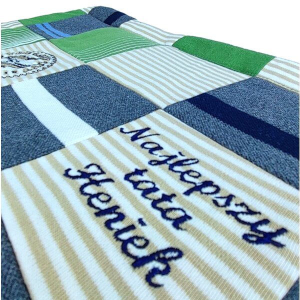 Aby Twoja poduszka stała się jeszcze bardziej wyjątkowa i osobista, skorzystaj z opcji dodatkowej jaką jest personalizacja. Personalizacja, to Twój dowolny tekst, który starannie wyhaftujemy z przodu, na jednym z kwadratów (haft maszynowy). Na zdjęciu prezentujemy przykładową personalizację „Najlepszy tata Heniek”. Twoja personalizacja powinna zawierać maksymalnie 30 znaków, nie wliczając przecinków, kropek itp, natomiast jeśli chcesz wyhaftować dłuższą personalizację od maksymalnej, wtedy prosimy o kontakt, aby omówić szczegóły Twojego zamówienia.